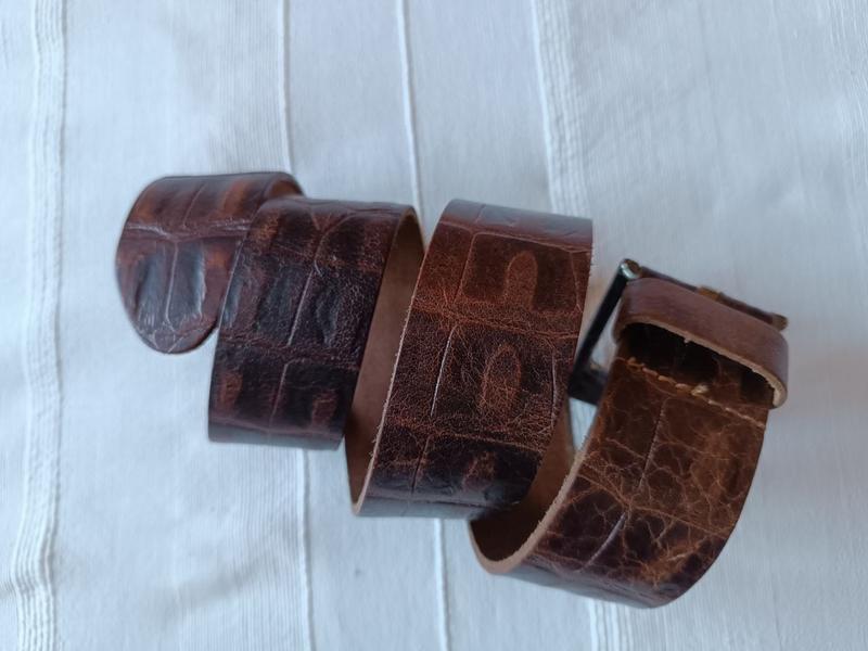Шкіряний ремінь petrol indastries на обхват 87-97см ,ручна робота Стан ідеальний,без пошкоджень Довжина без урахування пряжки-104,5см Проколи-83,5-95,5см Ширина-4,3см Товщина-3мм