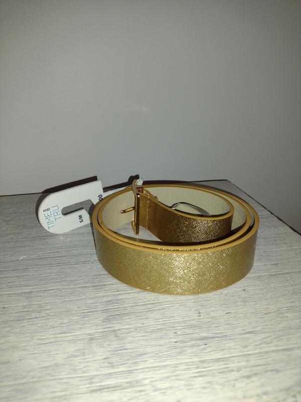 штучний матеріал, золотий колір, відомий бренд, привезено з США розмір S/M довжина приблизно 101 см (вимірювався в скрученому вигляді,щоб не пошкодити етикетку) ширина 3 см дуже гарний, стильни