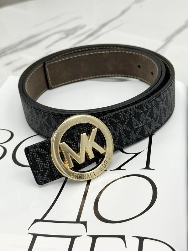 Ремінь унісекс ⚪️ Ремінь прикрашений фірмовим логотипом. Матеріал: шкіра Ширина: 3,5см Довжина: 105 - 130 см код чорний срібло MK-10010 чорний золото MK-10011 коричневий срібло MK-10012 коричневий золото MK-10013