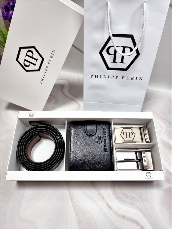 Набор ремень и пряжки и кошелёк кожаный philip plain