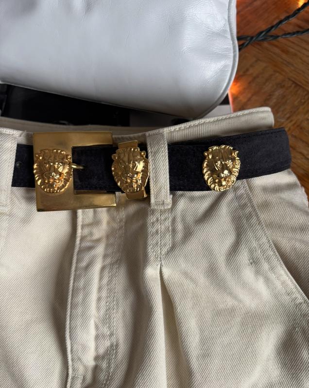 🔅ціна 1200🔅 🔅Оцініть цю елегантність! Чорний замшевий ремінь Daniel з розкішними золотими лев'ячими головами. Як би ви стилізували цей аксесуар? 🤔 Розмір S, довжина 82 см. Пишіть свої ідеї в коментарях! #стилізація #аксесуари #ремінь #daniel