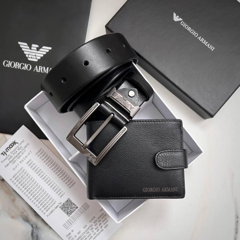 Чоловічий набір armani ремінь та гаманець зі шкіри чорний