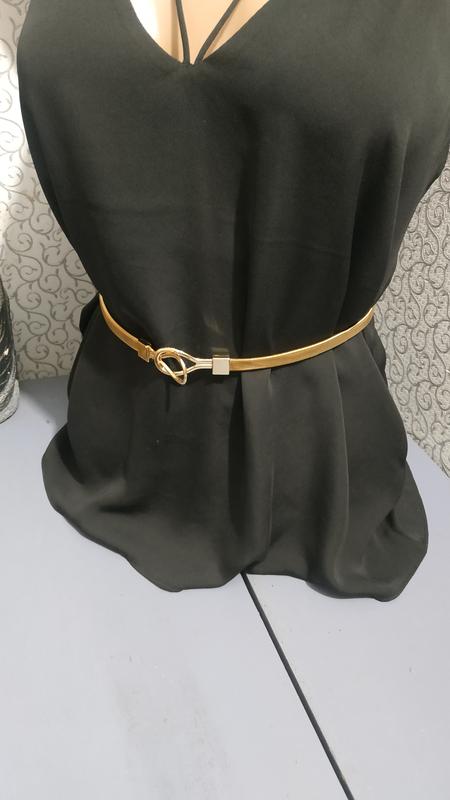 Металлический ремешок, пружина. Красиво тянется.Длина в произвольном состоянии 60см, легко тянется на 100см