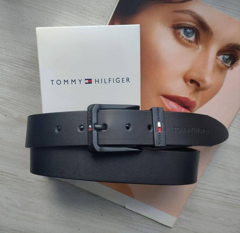 Шкіряний ремінь tommy hilfiger із чорною пряжкою чорний black2 tsh2