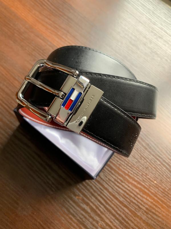 Мужской ремень mommy hilfiger reversible enamel flag leather belt черный / коричневый