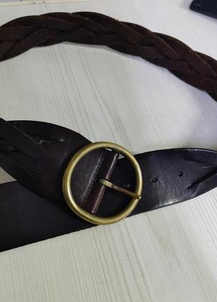 шкіряний плетений ремінь Theory виробництво Італія довжина 98 см відстань до першого отвору 78- останнього 88 см з кроком 2,5 см / є можливість зробити ще два отвори ширина 5,5 см колір темно-коричневий стан ідеальний