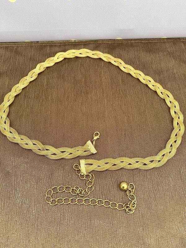 Стильний, красивий, витончений пояс-ремінь, доповнить ваш стильний образ. Довжина плетеним частини 79 см,повністю з ланцюжком 110см.