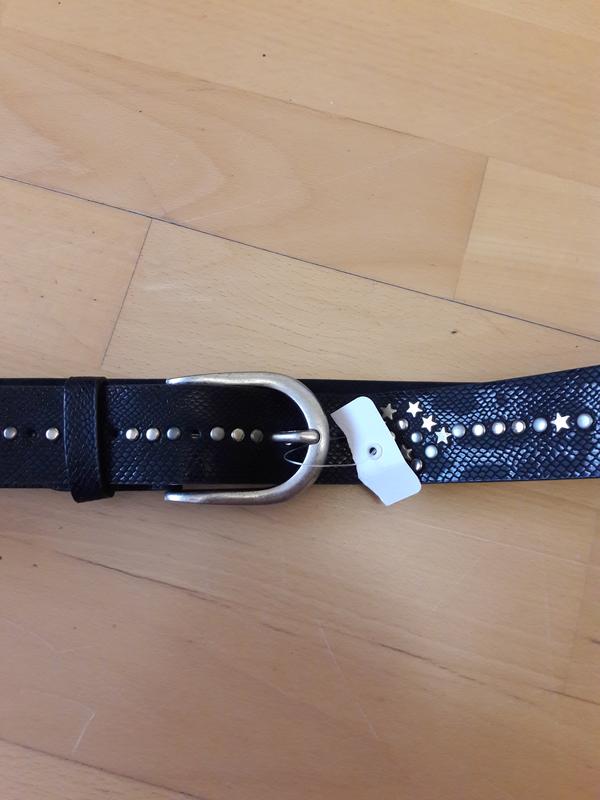 Ремінь довжиною 114 см, до 1 отвори 94 см, до останнього - 105 см. Ширина 3 див. Шкіра 35%, поліуретан 35%, метал 30%. Новий. Дефектів немає.