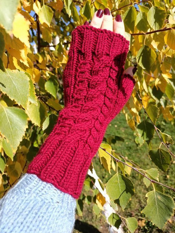 В'язані мітенки ручної роботи. Зв'язані з напівшерсті на обхват долоні 17-20 см. Довжина 24 см. Колір винний. Додаткові характеристики: Стать: Жіночий Колір: Червоний Вид виробу: Мітенки Матеріал верху: В'язання Розмір жіночих рукавичок: L / 7,5" / 19 див. Розмір жіночих рукавичок: M / 7" / 18 див. Розмір жіночих рукавичок: S / 6,5" / 17см. Розмір жіночих рукавичок: XL / 8" / 20 див. Сезон: Весна/осінь Сезон: Зима Товар виготовляється на замовлення