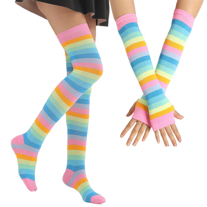 Набір гольфи та мітенки з різнокольоровими смужками. Матеріал – бавовна. Добре тягнуться, приємні до тіла. У мітенок розмір універсальний, підходять як дітям, так і дорослим. З отвором для великого пальця. Довжина приблизно 35см. Гольфи підходять на стопу від 35-го до 41-го розміру. Довжина у спокійному стані 68см+ тягнуться. При замовленні від 2 шт - 387 грн при замовленні від 5 шт - 365 грн при замовленні від 10 шт - 344 грн Разом вигідніше! Відправка щодня Розеткою, Новою Поштою або УкрПоштою. Оплата: 1. безпечна оплата, 2. передоплата на картку, 3. накладений платіж (без передоплат)