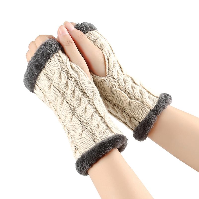 Мітенки з хутром в'язка бежеві 6845 без пальців телесні митенки теплі перчатки
