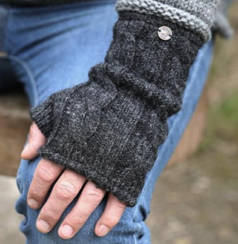 Black yak митенки из шерсти яка перчатки без пальцев в полоску с жаккардовым узором внутр...