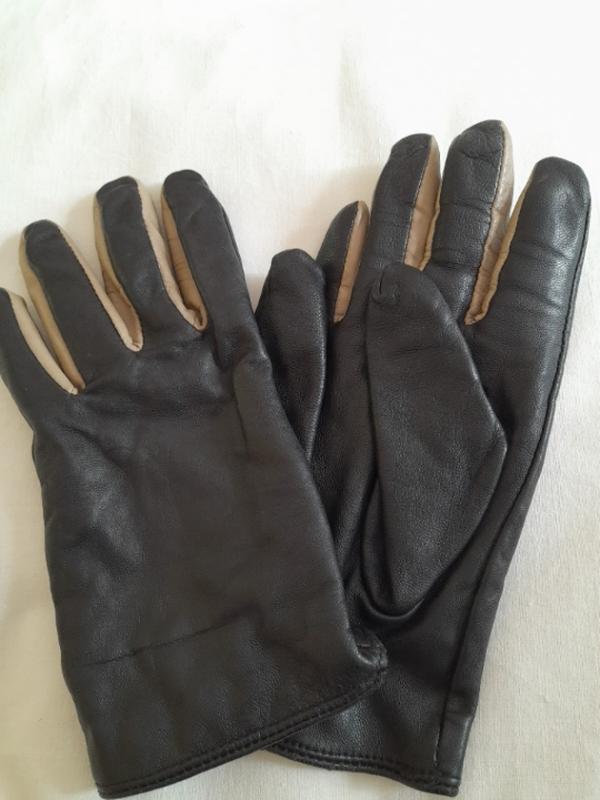 Шкіряні,шкіра тоненька. Утеплені,підклад з поліестру. Були в користуванні декілька разів. Є нюанси,останні фото. Комбіновані шкірою двох кольорів. Етикетка відсутня.