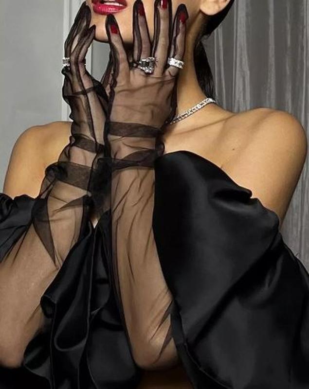 Шикарні чорні рукавички, фатинові трендові рукавички, високі рукавички фатин