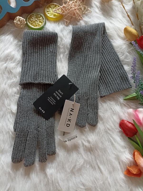 Сірі довгі в'язані рукавички Na-KD. Довжина рукавички 46см На будь-яку руку, добре тягнуться 100% акрил