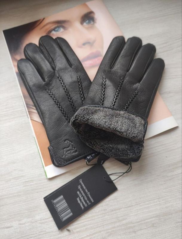 Чоловічі шкіряні рукавички перчатки зі шкіри оленя, румунія підкладка махра black