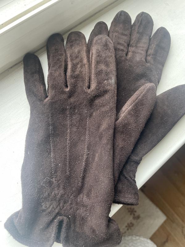 Рукавички жіночі замшеві насиченого шоколадного кольору, іото не передає справжній колір. Дуже мʼякі. стан ідеальний, розмір 7,5