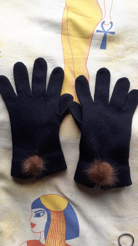 Новая черная женская трикотажнаяперчатка с кожей и помпоном.Р--р М.Made in Italy., Вязаная перчатка из шерсти или другого теплого материала. Она имеет декоративный элемент в виде коричневого пушистого помпона или меха на манжете. Перчатка предназначена для согревания рук. Она в хорошем состоянии.См фото,пишите.