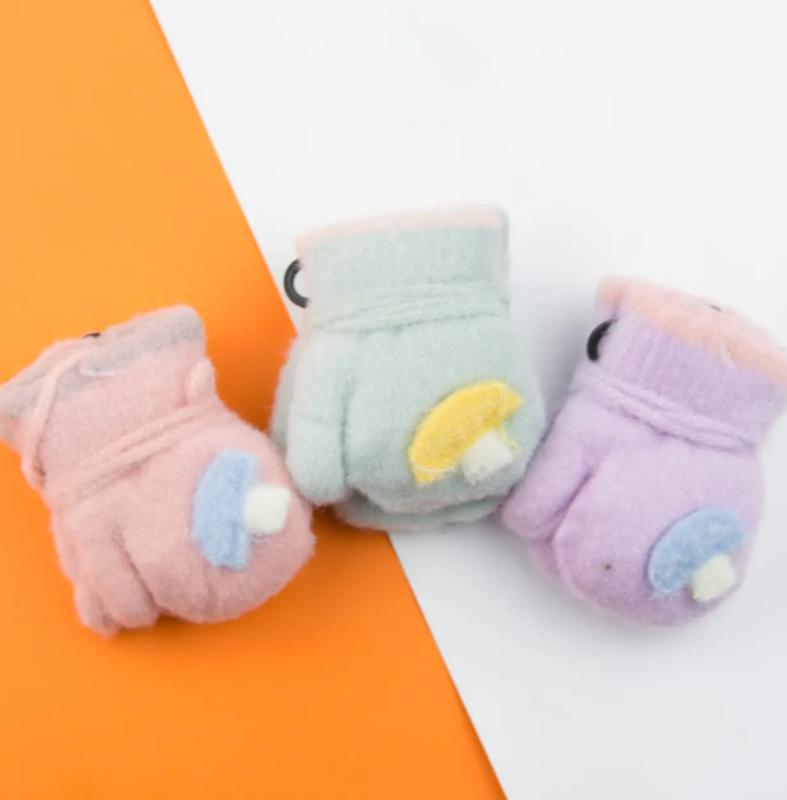 Рукавиці для малюків зимові з хутром на 0-0-6 років на мотузочку з грибочком