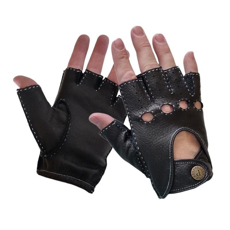 Чоловічі безпалі шкіряні чорні рукавички з оленячої шкіри pitas 5003 9