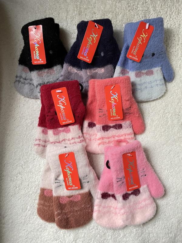 Зимние варежки с утеплением для девочек. Длина ладошки 9 см {от запястья до кончика среднего пальца}. Длина большого пальчика 3 см ! В наличии те, что на первом фото! При необходимости сделаю больше замеров и фото. Смотрите другие мои объявления с детской одеждой.