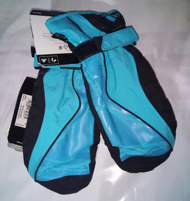 Тільки оригінальна продукція - ніякого лівого стоку Дуже теплі рукавички рукавиці рукавиці . ADIDAS W WINTER MITTEN G ClimaProof Storm, Clima365 Артикул: V86389 Розмір: M/8 Довжина 27,5 см Колір: чорний/бірюзовий Висока якість від ADIDAS гарантовано Супер-теплі рукавиці Спеціальні гумові накладки на внутрішній стороні включаючи великий палець Зсередини оброблені м'яким флісом