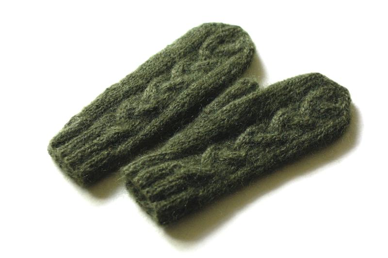 Рукавиці з ніжного італійського кід-мохеру. Неяскраве темно-зелений колір (хакі). Розмір середній жіночий 18-19см. Відправка після оплати на картку.