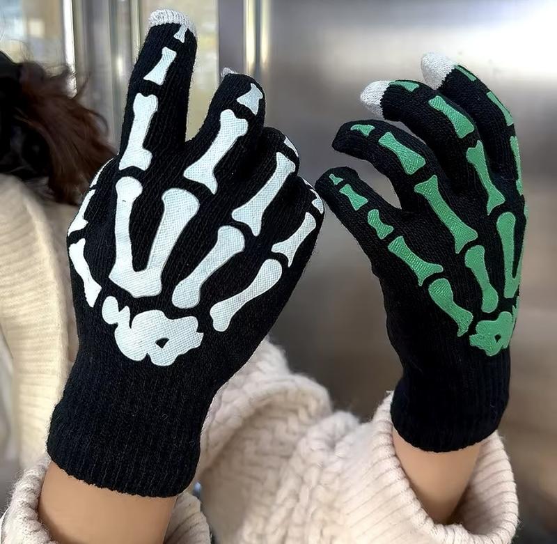 Рукавиці 2 кольора унісекс скелет світяться у темряві готика гранж