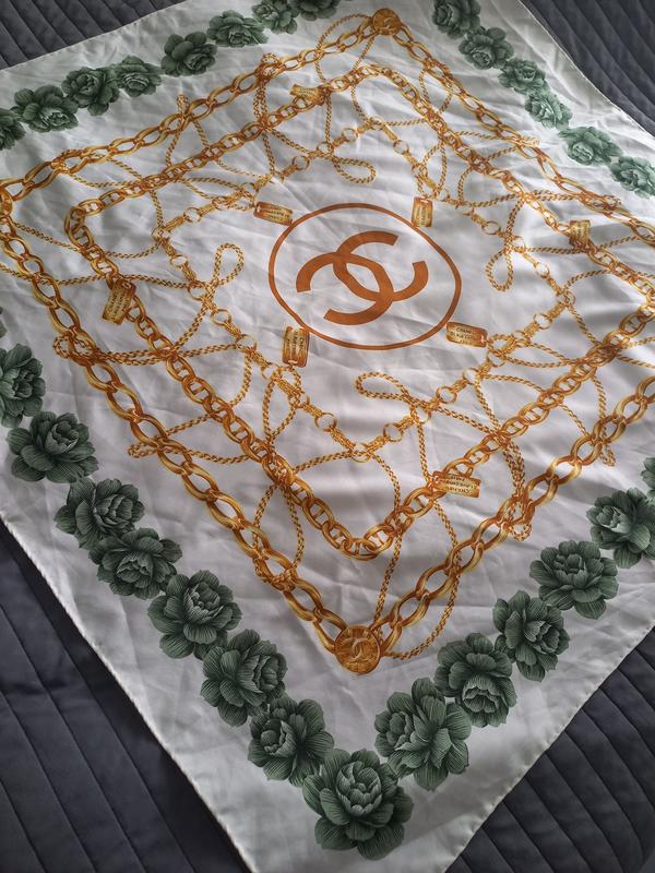 платок chanel( в стиле Chanel) 86х88см, состояние не идеальное, имеются небольшие нюансы, бирки нет, но материал шелк, роуль. наложенным платежем не отправляю)