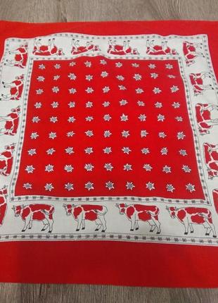 Хустинка в ідеальному стані. Розмір 51,5х51,5. Колір коралово червоний і поєднані з білим та чорним.