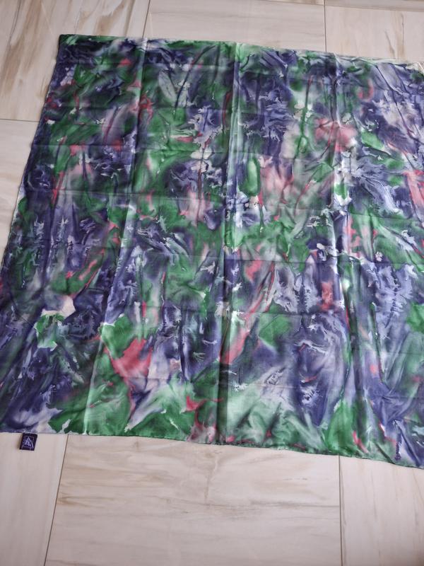 Шикарна шовкова хустка ,100% шовк, шов роуль.Ручна робота хустка з якісного шовку, з розмитим малюнком в стилі Клода Моне, Іріси Неймовірна гра синьо зеленого та рожевого кольору 90x90см Всі хустки мої, особисті, чищу шафу. Переглядайте інші хустки на моїй сторінці.