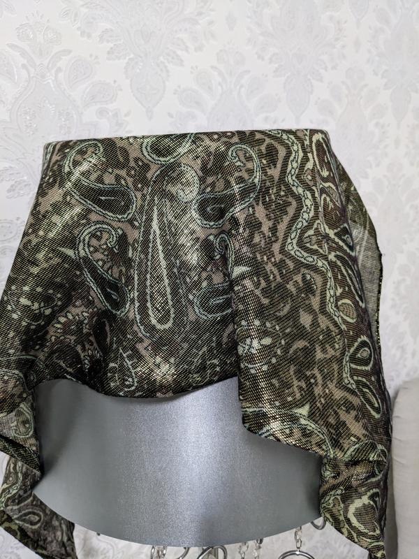 Кутова хустинка,дуже мягенька,легенька з люрексовою ниткою.Можна носити,як хустинку на голові,пов'язку на голові,на шиї.
