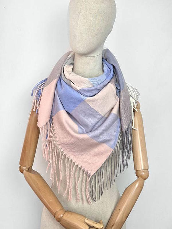 Хустка жіноча тепла у клітинку колір пудра лаванда