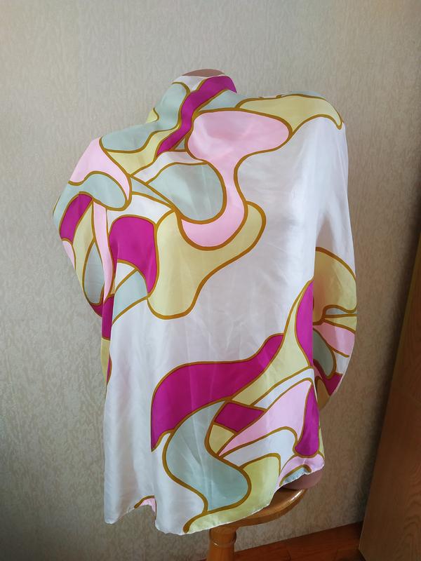 Шовковий платок, саржевий шовк, є мало помітна пляма - 3 фото, шов роуль, основний колір - молочний. Бірок немає - точно шовк. 75 х 78 см