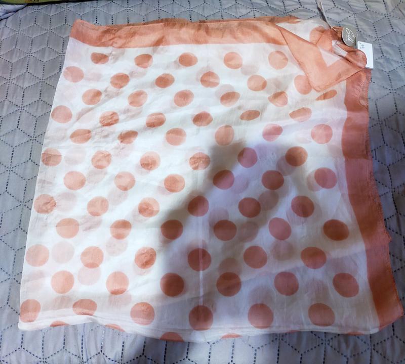 Платок, хустка шовк у горошок. Бірка магазинна наявна. Тканина натуральний шовк, тканина м'яка, дуже приємна на дотик. Розмір 90 см на 95 см На хустці кілька зацепок, в ціні враховано. Відправляю поштою після повної оплати. Торгу, обміну, повернення немає.