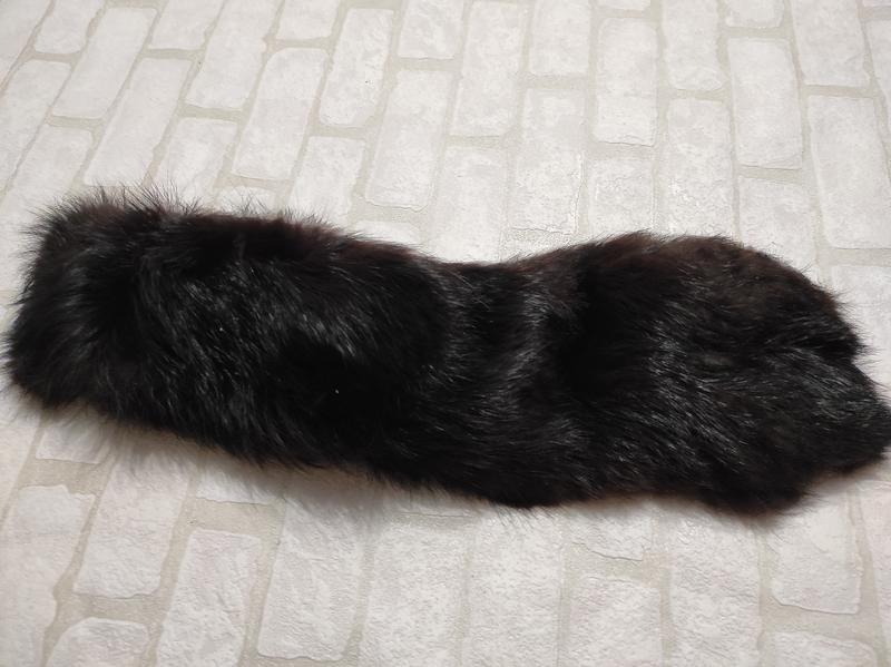 Багатий, густе хутро чорнобурки. Може підійти для коміра. Ширина по краях 17-18 см, в середині 19 см, довжина 67-68 см