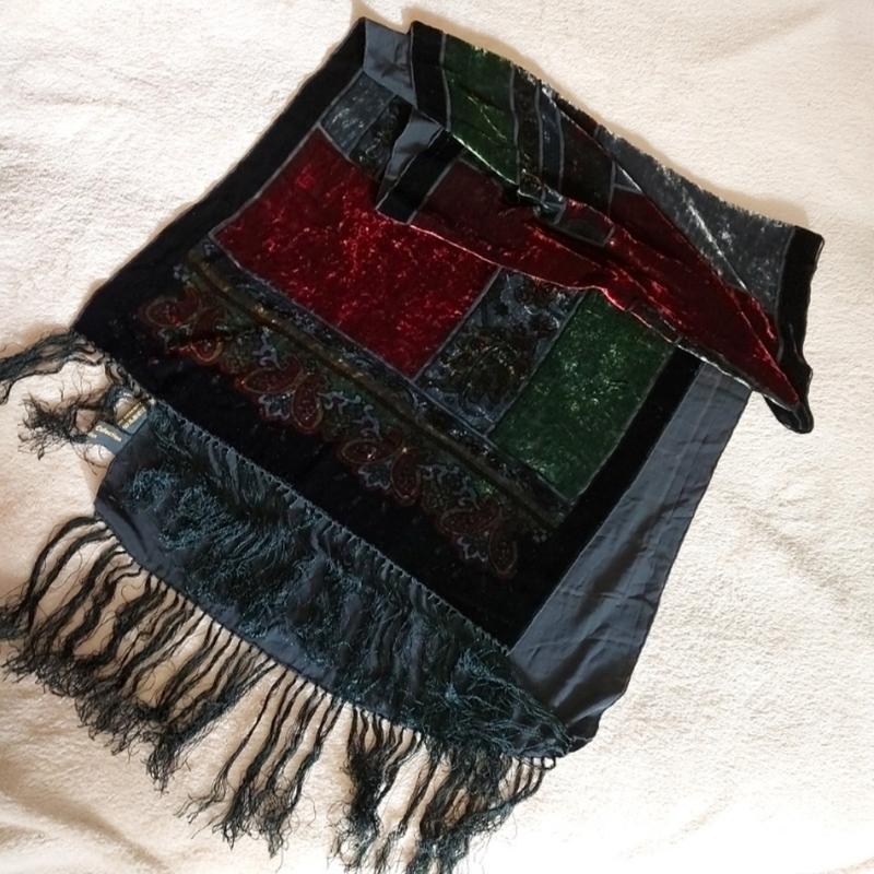 Ширина 49 см, довжина без китичок 173 см 40% шовк, 60% віскоза