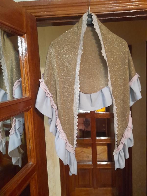 Очень красивая ,оригинальная шаль в стиле "бохо"### Сочетание материалов разных фактур( люрекс, котон,кружево,марлевка) в пастельных тонах