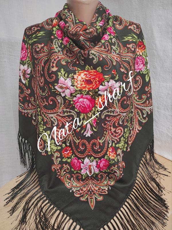 Українські хустки з сучасним візерунок та шовковими тороками 😎 📏 120*120 см 80% шерсть 20% віскоза