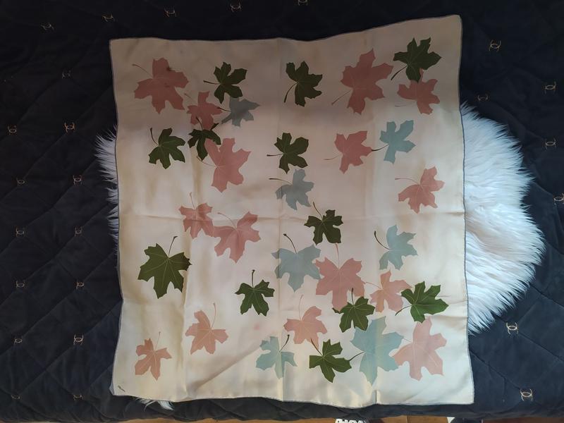 Дуже красива ніжна шовкова хустина mareа з підписом автора . Шов роуль, бірочок, на жаль, немає. Стан дуже хороший, є плямки, де-не-де розпустився шов. Склад, думаю, шовк, можливо, з додаванням поліестера. Вінтаж. Розміри: 73.5*77.5
