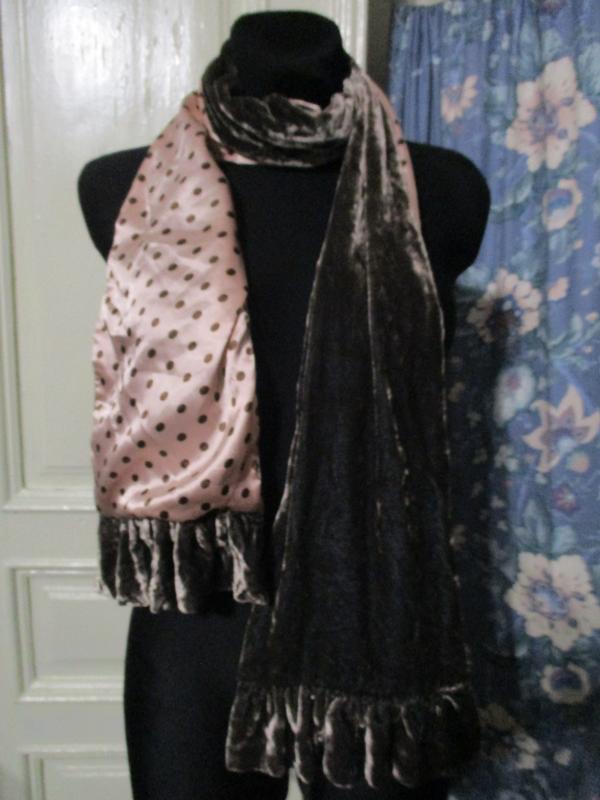 шарф сіро-рожевого кольору.поліестер із оксамитом.розмір 20*188 см