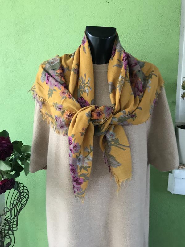 Гарна велика хустка з квітами від Pieces. Розмір:105х102 см. Бірка зі складом зрізана. Дуже схоже на бавовну. Стан відмінний.