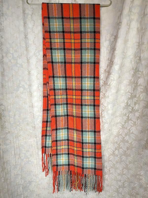 ◾Длинный и широкий шарф на зиму в клетку оранжевого цвета ◾Ширина в развернутом виде 60 см ◾Длина 200 см ◾состояние 9/10 (есть небольшие катышки) ◾60 грн