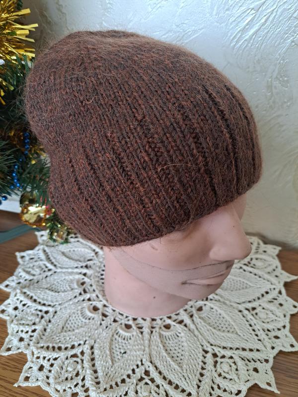 В"язана чоловіча шапочка біні, коричневий меланж, зв"язана із мериносової вовни і кід мохеру. Розмір 55-57. Ціна 400грн.