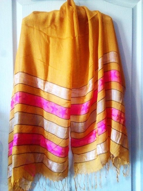 Цікавий шарф верблюжого кольору, темний оранж, в смуги. Розмір 60*155 див. *** У мене багато цікавого, підписуйтесь, осматривайтесь!)