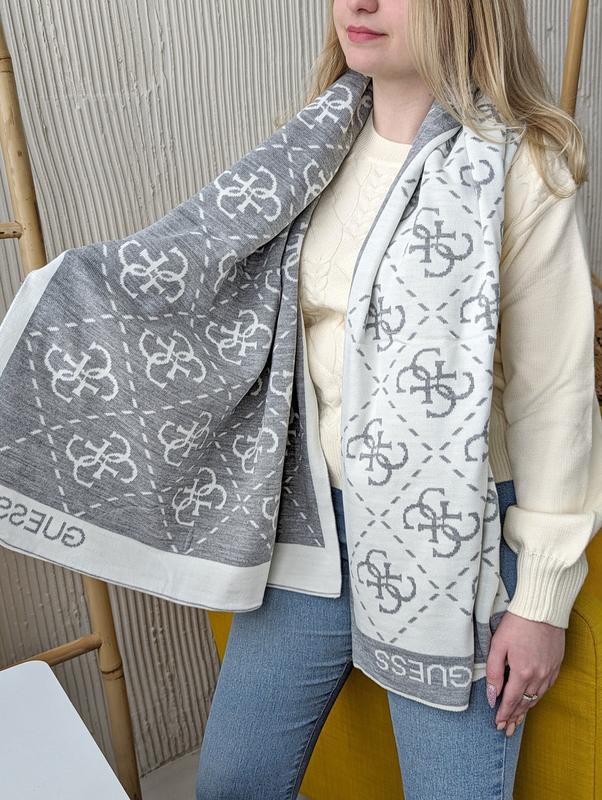 Двосторонній шарф guess теплий біло-сірий є