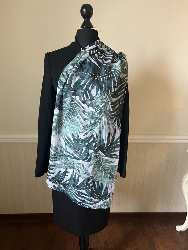 Хороших аксесуарів не буває багато, красивий шарф з легкої тканини, буде слугувати для доповнення вашого образу. Красивий природний принт, зелених кольорів. Розмір 130на 150 см.