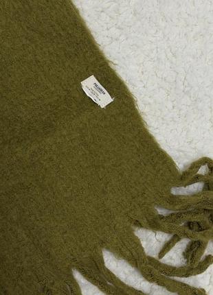Теплий шарф від популярного бренду Pull&Bear в стильному оливковому відтінку. Особливості: • М'яка приємна текстура • Декоративна бахрома по краях • Універсальний розмір • Насичений оливковий колір Ідеально підходить для створення затишних осінньо-зимових образів. Поєднується з одягом різних стилів та кольорів. Забезпечує комфорт і тепло в прохолодну погоду. Бренд Pull&Bear відомий якісними аксесуарами за доступною ціною.
