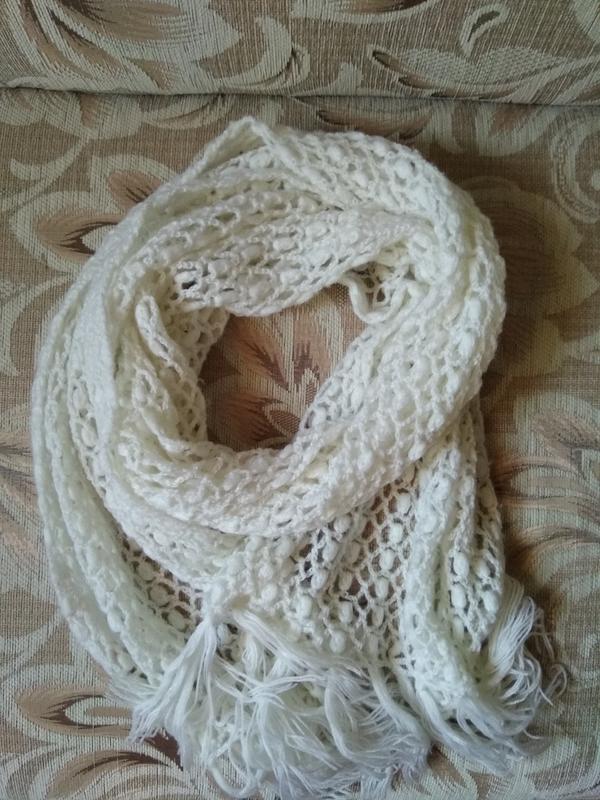 У язаний білосніжний шарф. Довжина 1,60 см, ширина 0,30 див.
