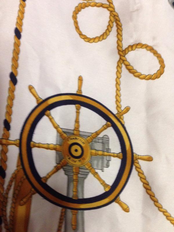 Чудовий хустку білий з темно-синій ми і коричневими якоря мі, розмір:88 см/89 см;FABRIQVE in Italy